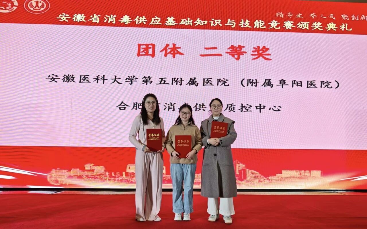 我院消毒供应中心曹雪、卢萍、房娟三人凭借扎实的理论功底、精湛的操作技能和默契的团队协作,从全省33支参赛队伍中脱颖而出,荣获团体二等奖,曹雪同时获得理论比拼个人二等奖。