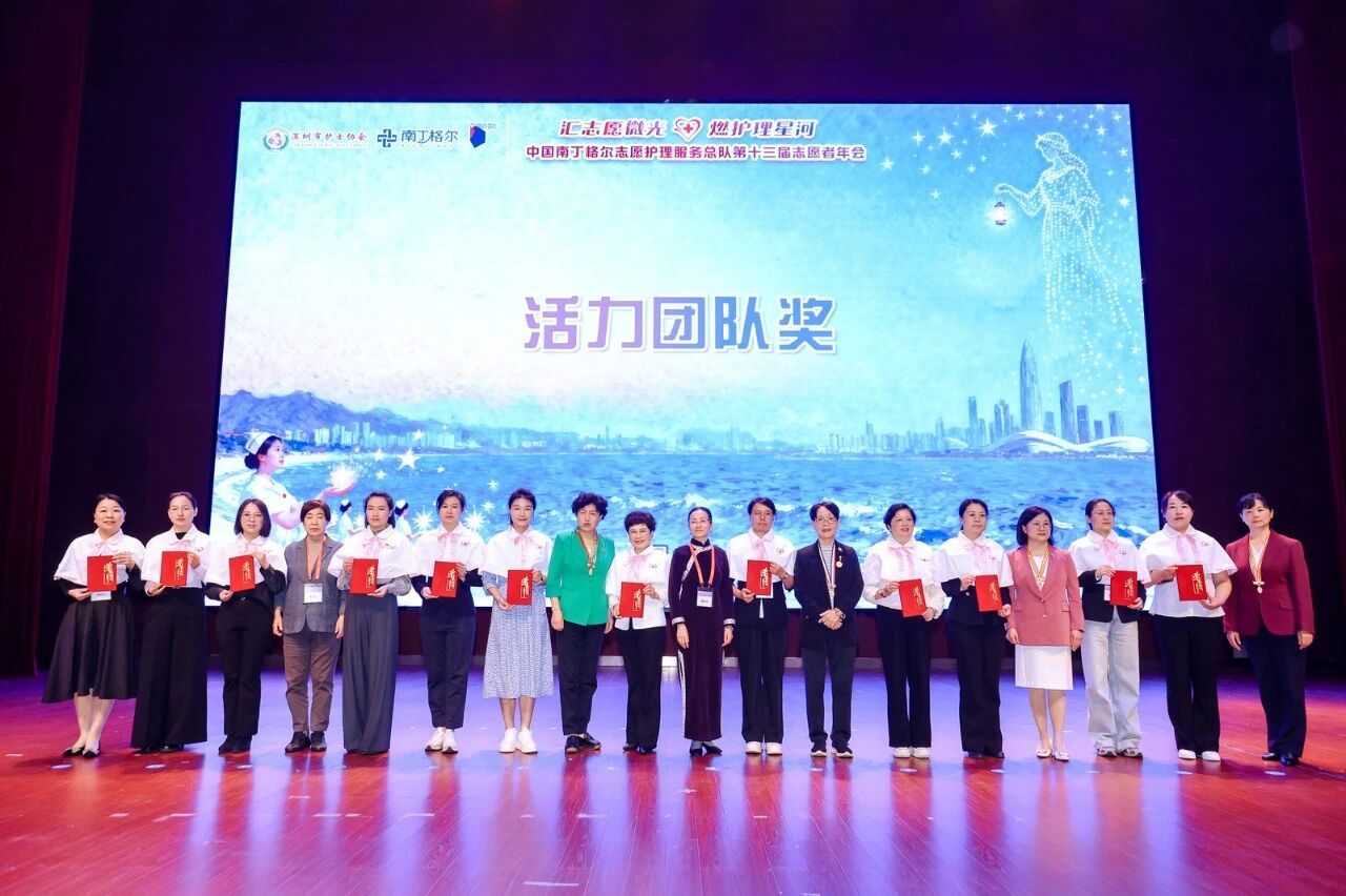 南丁格尔志愿护理服务队荣获活力团队奖,另有四名队员分别获得杰出组织者奖、最美志愿者奖、最佳信息管理奖与宣传工作者奖。 此次获奖,既是对我院志愿护理服务工作成效的充分肯定,更是对未来的激励与鞭策。全体队员将以此为契机,继续坚守初心、牢记使命,以更专业的技能、更温暖的关怀,将健康服务延伸至更多有需要的角落,让志愿精神持续闪光,为守护人民健康、增进群众福祉贡献更大力量。