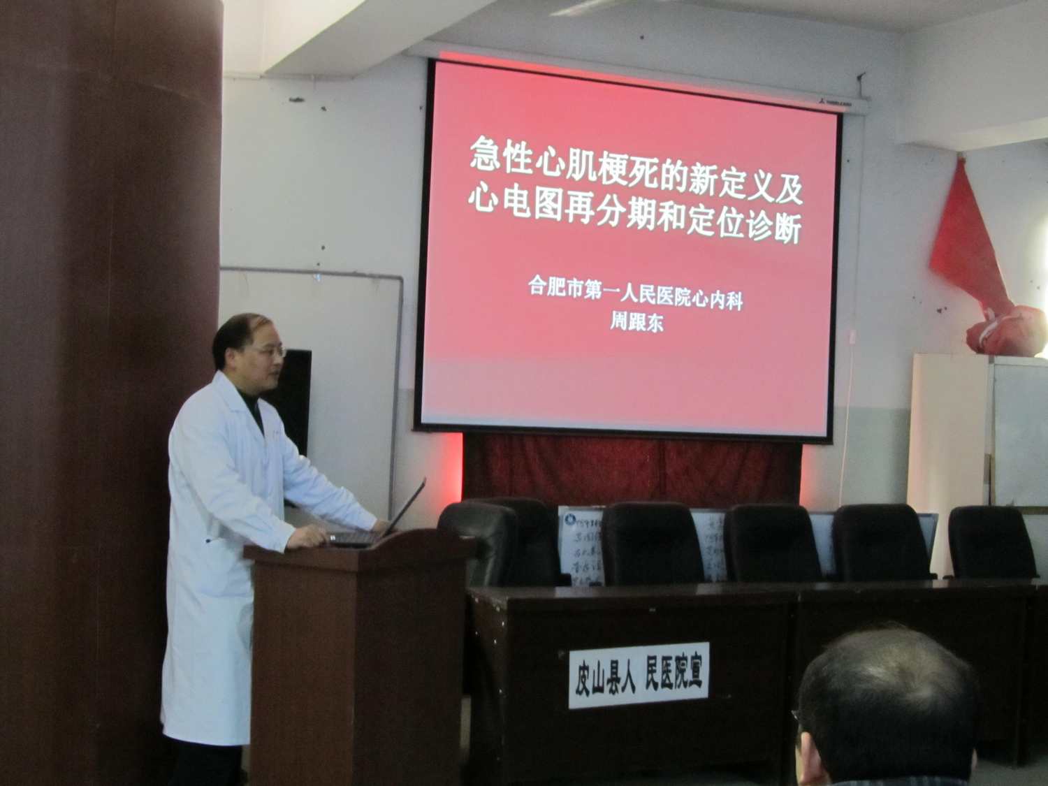 2011年1月7日下午医疗队分队长周跟东副主任医师在皮山县人民医院大礼堂举办了第一次学术讲座,听课者达40多人,广大医生反应良好。皮山县广大医护人员被安徽医疗队的精湛技术和敬业精神,不远万里来到皮山这个祖国美丽的边疆进行医疗援助的奉献精神所感动,表示安徽医疗队的到来对于提高当地的医疗水平有着极其重要的意义,体现了党中央、全国各族人们对于少数民族的关心和厚爱,安徽医疗队员纷纷表示会加倍努力,结合当地医疗实际状况及本专业特点,制定自己的工作计划,保证完成安徽省委省政府、省卫生厅、合肥市卫生局交给的援疆任务。