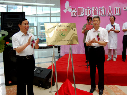 ,合肥市杨增权副市长宣布合肥市流动人口“一单制”免费计划生育技术服务正式启动。活动最后,高俊文副主任与杨增权副市长共同为定点医院滨湖医院揭牌。