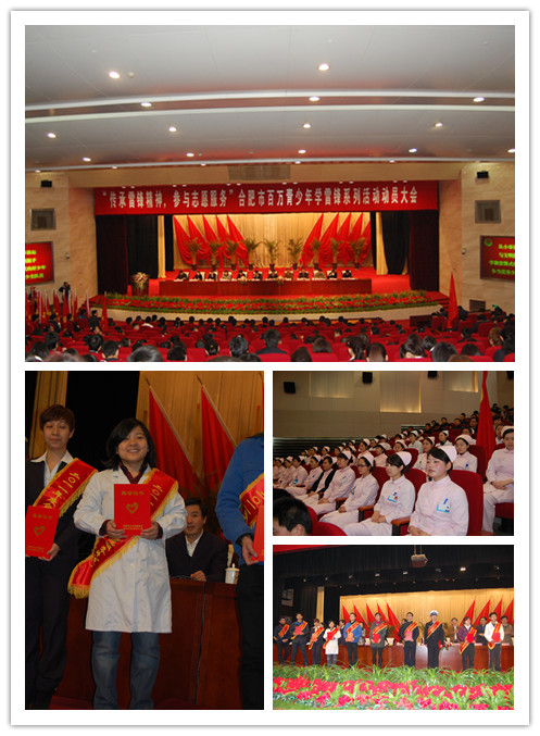 年合肥市志愿服务先进集体和个人;宣读了合肥市百万青少年学雷锋系列活动实施方案;授“创建雷锋大队”旗、“青联委员会学雷锋志愿服务队”旗、“青年文明号集体学雷锋岗”旗、大中专学生社会实践学雷锋志愿服务队”旗。
