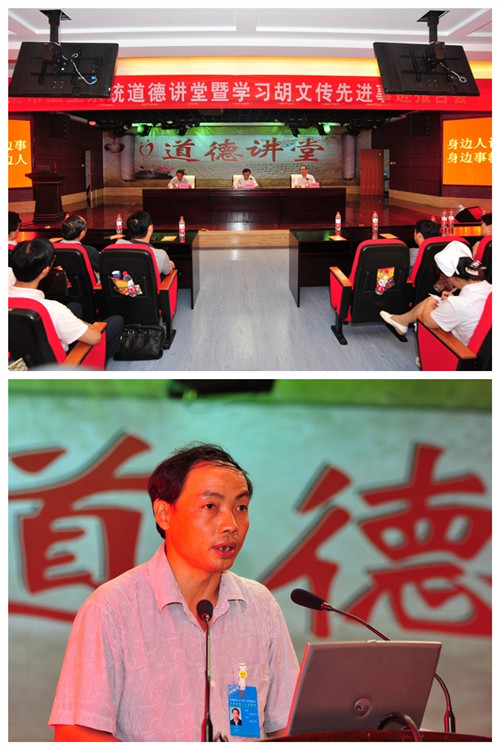 下午,全市卫生系统道德讲堂暨召开学习胡文传先进事迹报告会在滨湖医院大礼堂举行,来自全市卫生系统各单位的460余名医务工作者聆听了全国道德模范胡文传的感人事迹,会议由市卫生局党委书记胡国春主持。