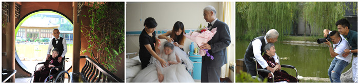 年“金婚”纪念日,而他的老伴儿去年起就住进了滨湖医院老年科,他希望能在病房里完成老伴儿的心愿。为了这一组特别的婚纱照,老年科辗转通过报社找到一家爱心影楼,为这对老人圆了