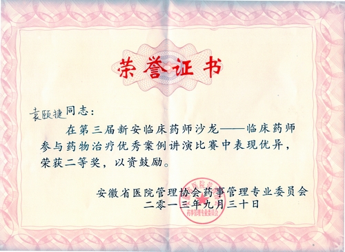 会议邀请国内知名专家围绕医院药事和药物使用管理与持续改进、临床药学学科建设等热点问题进行专题讲座,并开展临床药师参与药物治疗优秀案例讲演比赛。我院药学部肠外肠内营养专业临床药师袁颐捷的“一例结肠转移癌术后患者的营养支持治疗”案例,在全省28家医院的43位临床药师案例中脱颖而出,参加了9月30日的第三届新安临床药师沙龙——临床药师参与药物治疗优秀案例讲演比赛,经过精彩的现场PPT讲演和答辩,展示了营养支持对患者治疗的重要性及临床药师的风采,也体现了我院药师以病人为中心、为患者提供个体化药物治疗的服务理念,获得现场评委和观众的一致好评,最终荣获二等奖。