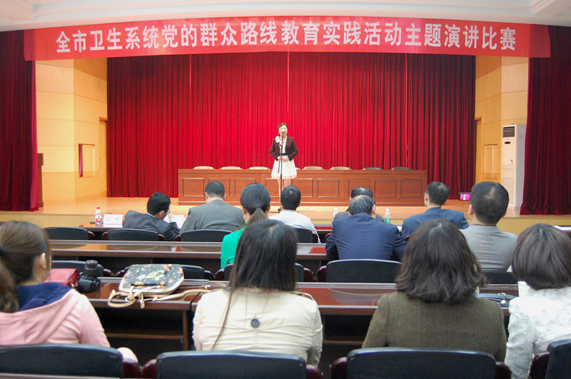 4 月 22 日 下午,全市卫生系统党的群众路线教育实践活动主题演讲比赛在合肥市四院举行,来自全市各家医疗卫生单位共 15 名选手参加比赛。 选手们紧扣党的群众路线教育实践活动主题,结合本单位的实际工作和对教育实践活动的学习认识,讲述了一个个奋斗在医疗卫生战线上,无私奉献的感人事迹,充分展示了党员干部在自己平凡的工作岗位上忠于党、忠于人民的精神风貌。比赛现场精彩纷呈,掌声不断。与会人员深受教育和感染,经过激烈角逐,我院选手陶文娟力压群雄,摘得本次大赛桂冠。