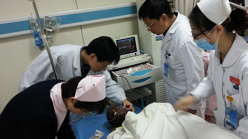 点25分,来自肯尼亚的日籍种子选手利斯,因为剧烈运动体力不支发生晕厥,被送来医院。牛伶院长助理亲自上阵,参与抢救。因为处理及时,利斯渐渐恢复了知觉。细心的护士发现,利斯被救护车送来医院时还穿着背心运动服,赶紧送来衣服给利斯穿上保暖。“Thank you very much,”利斯醒来后满怀感激地说道。