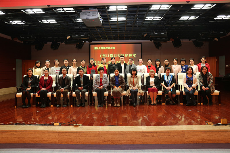 南区滨湖医院学术报告厅举行。2016年度安徽国际造口学校18位造口师学员、安徽省第二届伤口造口专委会代表、我院伤口造口专业小组核心成员以及来自全国其他医疗机构的护理人员代表共计300余名学员参加了此次培训。