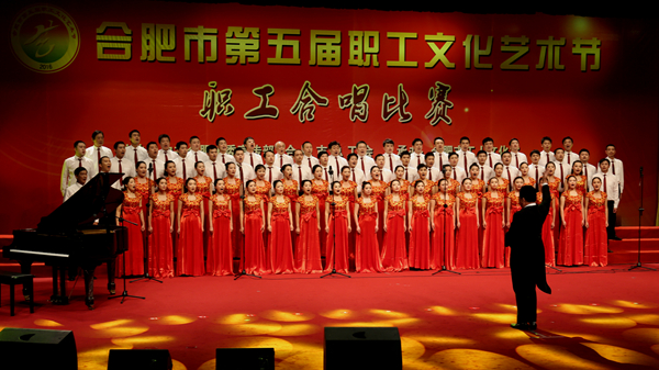 下午3点,市委副书记汪卫东宣布艺术节开幕。市委常委、宣传部部长钟俊杰致辞。市人大常委会副主任孔向阳主持。随后,来自合肥市直机关、企业单位及高等院校的10支比赛队伍相继登台亮相,用歌声表达对党和祖国的热爱之情。我院硕博合唱团第二个出场,分别演唱了《瑶山夜歌》和《众人划桨开大船》两首歌曲。舞台上我院合唱队员一个个精神抖擞、深情演绎,台下观众陶醉其中,深受大家好评。