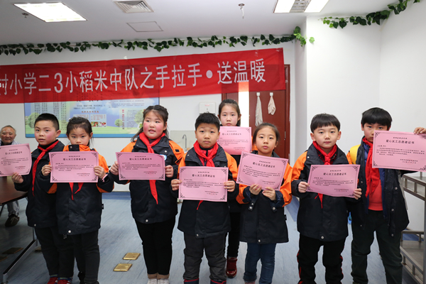 参观结束后,杨护士长为同学们颁发了“爱心义工志愿者证书”,肯定了小志愿者们的献爱心活动,激励他们传承尊老爱老的中华传统美德,践行志愿者精神,“关爱老人,从我做起,从小做起”。