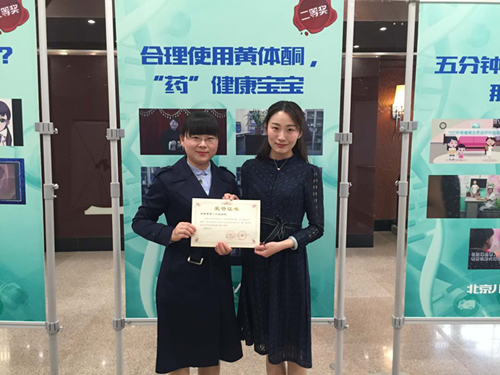 我院药学部《静馨说药》 系列微视频 之一《合理使用黄体酮,“药”健康宝宝》参加了本次全国用药 科普 教育 视频 大赛,影片中“静馨药师”着长袍,以说相声、打快板的艺术形式来宣传用药科普。这种独具匠心、别出心裁的手法,把专业知识科普化,宣传方式趣味化,在众多参赛作品中脱颖而出,受到了评审专家的认可,喜获全国二等奖。颁奖仪式于论坛开幕式上进行,刘静药师代表药学部制作团队上台领奖并合影留念。此次所有参赛微视频海报在会议中心展出,并进行了获奖视频循环展播,得到参会代表的一致好评。