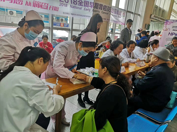 年全国早期胃癌防治宣传周活动在门诊大厅举行,本次活动的主题是“防治胃癌,从筛查开始”。十余名医护人员为市民义诊的同时还开展了健康大讲堂、免费抽血和