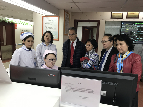 月28日,港籍省政协委员周伯展一行在合肥市滨湖医院调研智慧医院建设情况,市政协港澳台侨外事委员会主任陈寅、合肥市第一人民集团医院医务部副部长杨善保、护理部主任潘爱红及相关部门负责人陪同调研。