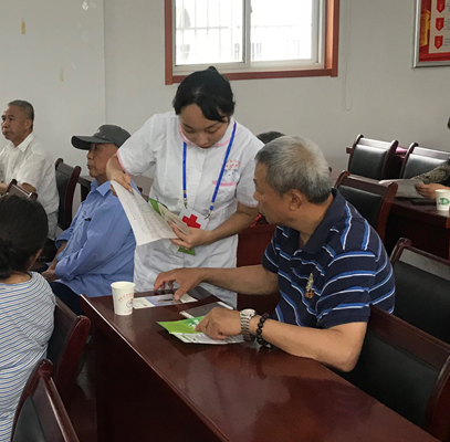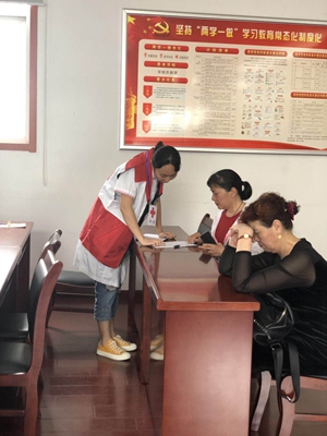 图为眼科护士、营养师王思博进行巡讲前问卷调查。