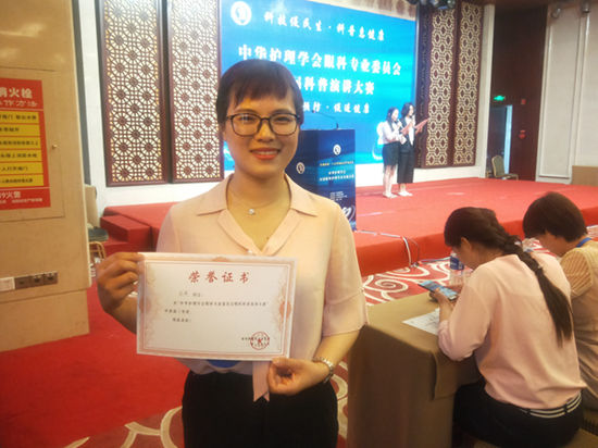 个人的成绩离不开团队的努力。在接到决赛通知后,我院眼科护理团队欢欣鼓舞。大家共同研讨赛事标准,搜索参赛信息、主动学习取经、确定展示形式。时间紧迫,竞争激烈,在滨湖医院护理部全程指导下,芮燕和团队经过反复的斟酌、修改,不断优化比赛方案,力争呈现出最完美的作品。在决赛的赛场上,芮燕以深入浅出的解说、真诚自然的互动获得评委的一致认可,最终获得三等奖的好成绩。