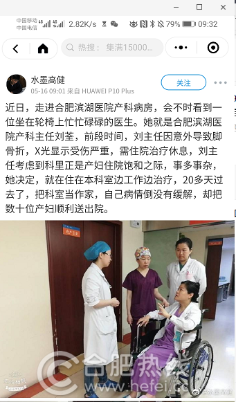 “我一直挂刘主任的专家号,现在看到医生腿都断了还在为我们做检查,我很感动。”目前怀孕