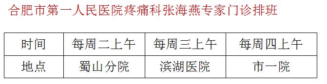 为每周二上午蜀山分院门诊,每周三上午滨湖医院门诊,每周四上午