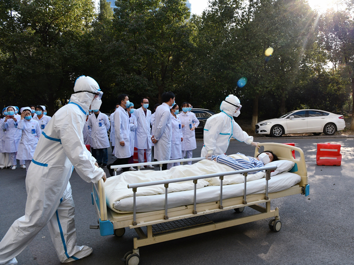 为进一步做好秋冬季新冠疫情防控工作,提高医院各级部门协作能力,增强医护人员对新冠患者救治处置流程的掌握程度, 11月13日下午,合肥市滨湖医院组织开展了新冠肺炎疑似病例应急处置演练。