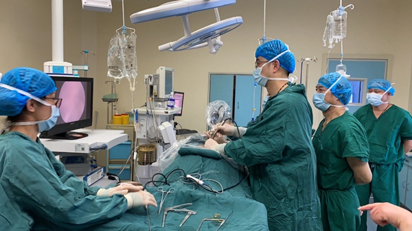 脊柱外科成功完成首例单边双通道内镜下髓核摘除术(unilateral biportal endoscopy,简称UBE),帮助73岁的耿阿姨解决了椎间盘突出症。此次UBE技术的开展填补了合肥市级医疗机构该项技术空白,为微创治疗脊柱退行性病变打开了新思路。
