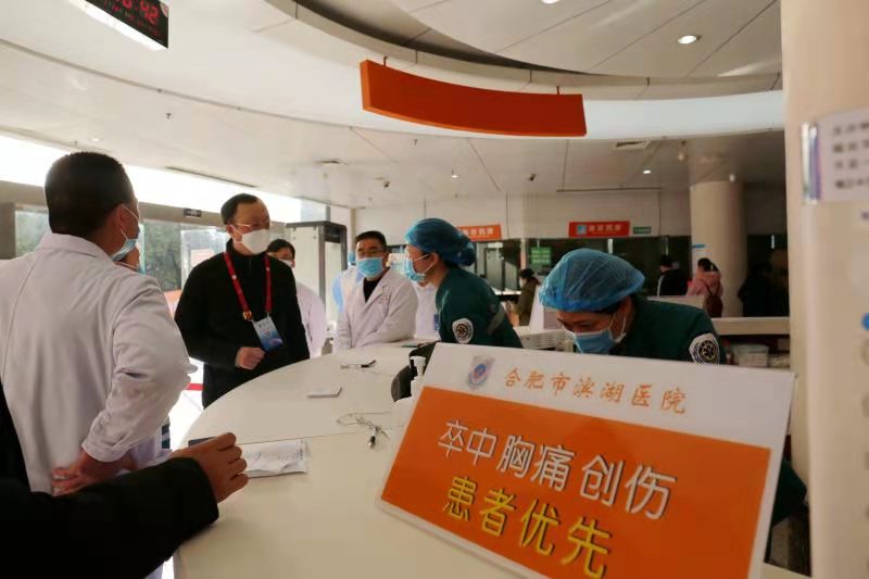 启动胸痛中心创建以来,由医务部牵头,心内科、急诊科、导管室、检验科、放射科、超声科、重症医学科等业务科室及相关行政职能部门组成胸痛中心团队,并与合肥急救中心和12家基层医院共同建立胸痛网络救治体系开展协同救治工作,共召开了50余场培训会、质控会及联合例会,对照中国胸痛中心建设标准,整合院前急救系统与院内绿色通道,制定各项规章制度并优化胸痛患者诊治流程,使胸痛中心运行更加规范,急性心梗患者的D-to-W时间(患者从进医院大门到导丝通过时间)大大缩短,为众多心梗患者赢得了宝贵的“黄金救治时间”。