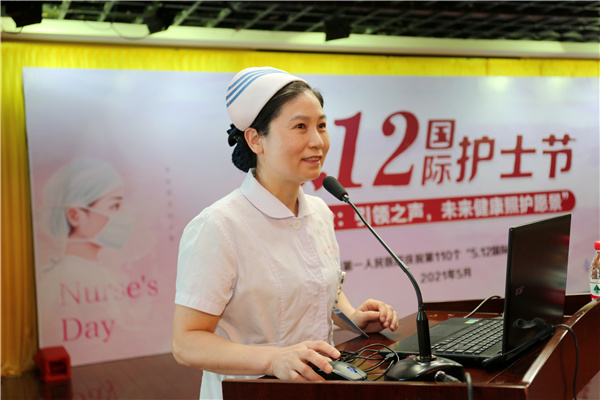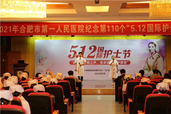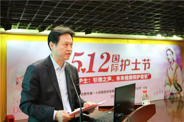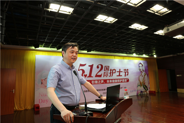 安徽省护理学会理事长武义华,合肥市卫健委副主任张晓峰也分别代表省学会和市卫健委向护士同胞们表达了节日的问候和祝贺,他们充分肯定了一院近年来护理工作取得的成绩,尤其是在新冠疫情救治、医养结合老年护理、伤口造口专业等学科上的贡献,希望一院护理工作者在“十四五”期间再接再厉,为广大人民群众的健康生活保健护航。