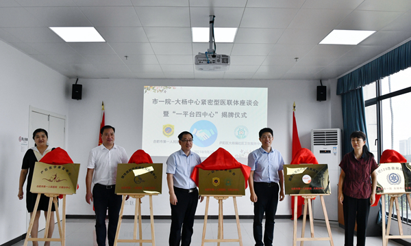 与庐阳区大杨镇社区卫生服务中心共同揭牌“一平台四中心”,在双方共建的紧密型医联体内打造一站式服务平台,建立代谢性疾病管理、肾脏病管理、产后康复和120急救四个分中心,借力紧密型医联体,让国家标准化慢病管理落地社区。