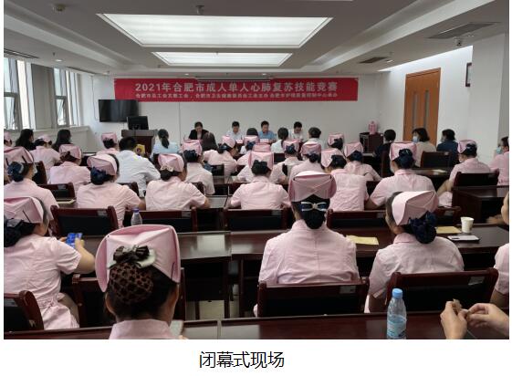 副院长、护理质量控制中心主任于卫华主持,合肥市护理质控中心成员、竞赛选手、监考专家、工作人员均参加了此次闭幕式。闭幕式中首先省级考核专家代表对此次竞赛理论和操作考核内容及环节各位选手的表现给予了详细的点评。随后合肥市总工会文教工会主席胡云祥宣读比赛结果,最后合肥市卫生健康委工会主席张仁杰代表合肥市卫健委对此次竞赛的成功举办作重要讲话,首先对本次竞赛的举办表示肯定,同时对竞赛提出了三点要求:一要规范急救技能操作流程和标准;二要强化护理人员急救技能,提升急救水平;三要强化业务培训意识。