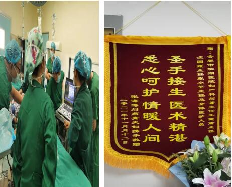 11月12 日10点20分,小刘成功分娩一名女婴。孩子娩出后,医护团队立即执行压沙袋、利尿、监测心率血压等处理措施,以高度默契的配合,顺利完成手术,并给与对症处理。在产科全体医护人员细心治疗及照料下,患者于术后第八天痊愈出院。