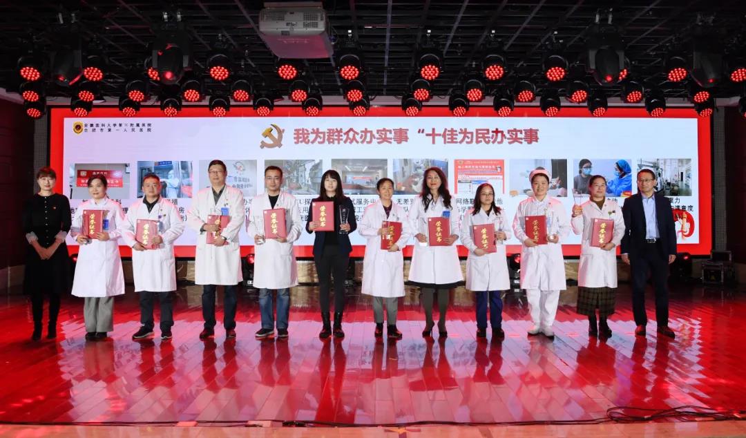 大会公布了“我为群众办实事”十佳推荐评选活动结果,并为十佳学习标兵、十佳服务标兵、十佳医德医风标兵、十佳为民办实事、十佳服务标杆科室、十佳优质服务案例、十佳医联体建设单位、十佳医联体先进个人等奖项的获奖代表颁奖。此次评选活动采用“网上投票+专家评审”的方式综合评出,充分展现了我院党史学习教育成果,评选出的先进集体和个人,聚焦群众“急难愁盼”问题,推出了一批聚民心、暖人心的民生实事项目,获得社会各界一致好评。