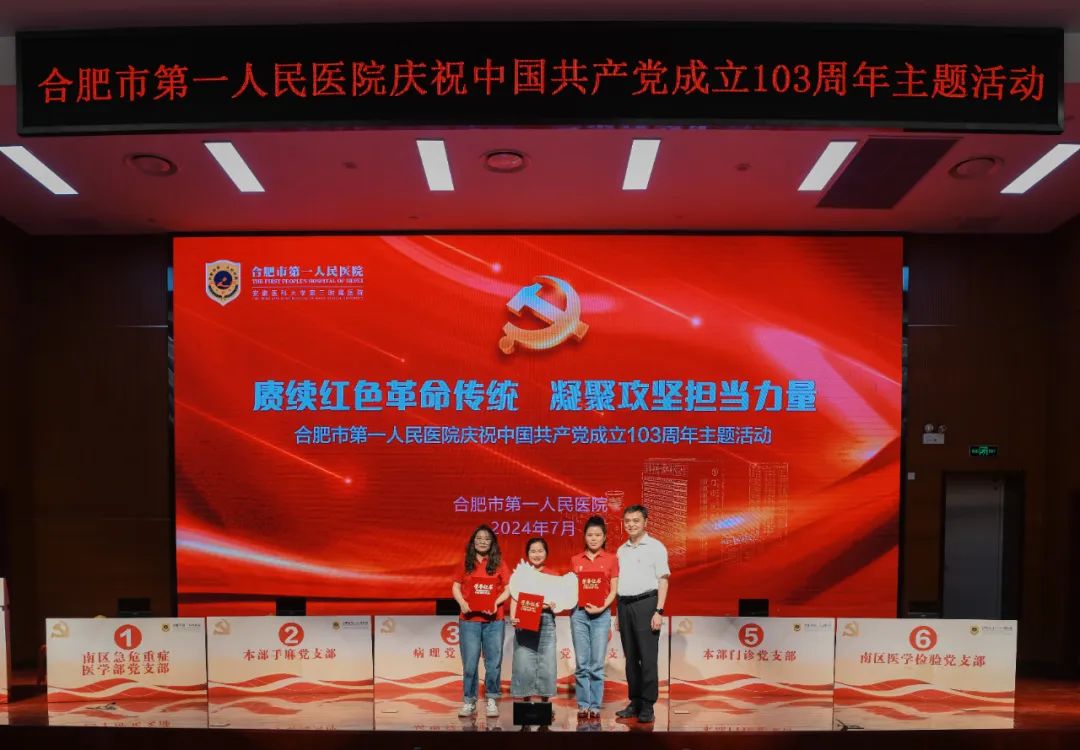 出席活动的领导还共同为获得2024年度合肥市卫健系统“两优一先”“合肥市优秀党务工作者”“合肥市先进党组织”的4个先进集体和6名优秀个人颁发荣誉证书,并对获得“五星级党支部”荣誉称号以及“全国公立医院临床科室标杆党支部”荣誉称号的六个党支部授牌。