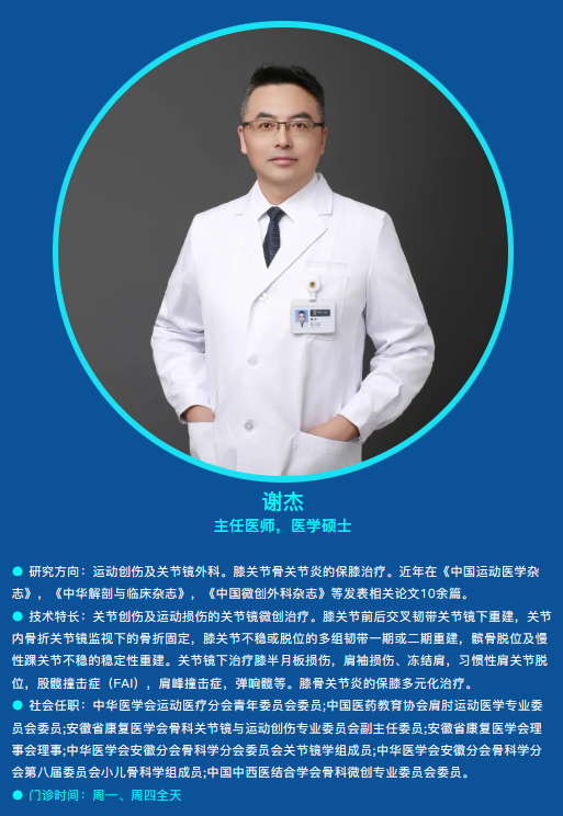 擅长关节镜下肩袖修复、肩峰成形术、肩关节脱位修复等复杂手术操作,为肩关节损伤患者提供个性化、微创化的治疗方案。