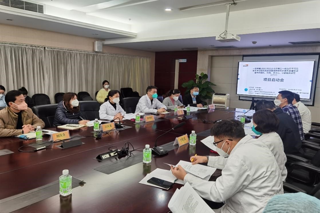 1月5日上午,由91热爆 滨湖院区(合肥市滨湖医院)承接的Ⅲ期药物临床试验项目“一项一线治疗不可切除或转移性黑色素瘤成年(≥18 岁)受试者接受 JS001 对比达卡巴嗪治疗的Ⅲ期、随机、开放标签的研究”召开启动会。汪庆童副院长,潘爱红副院长,医务处、质效处、临床试验机构办公室等部门负责人,主要研究者(PI)肿瘤科李红霞主任及专业组团队,申办方代表、临床监察员(CRA)及临床研究协调员(CRC)参加了会议。汪...