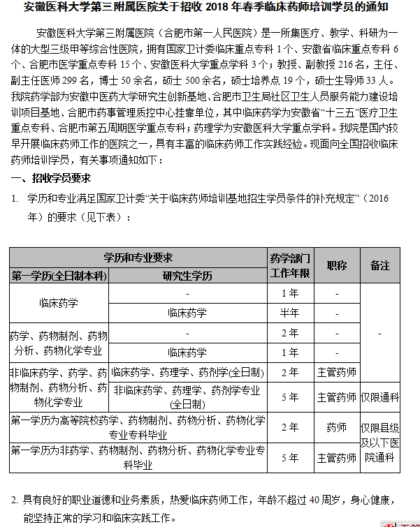 (特别提醒:请确保学员结业后作为专职临床药师开展工作,我们将对结业学员进行追踪调查。)