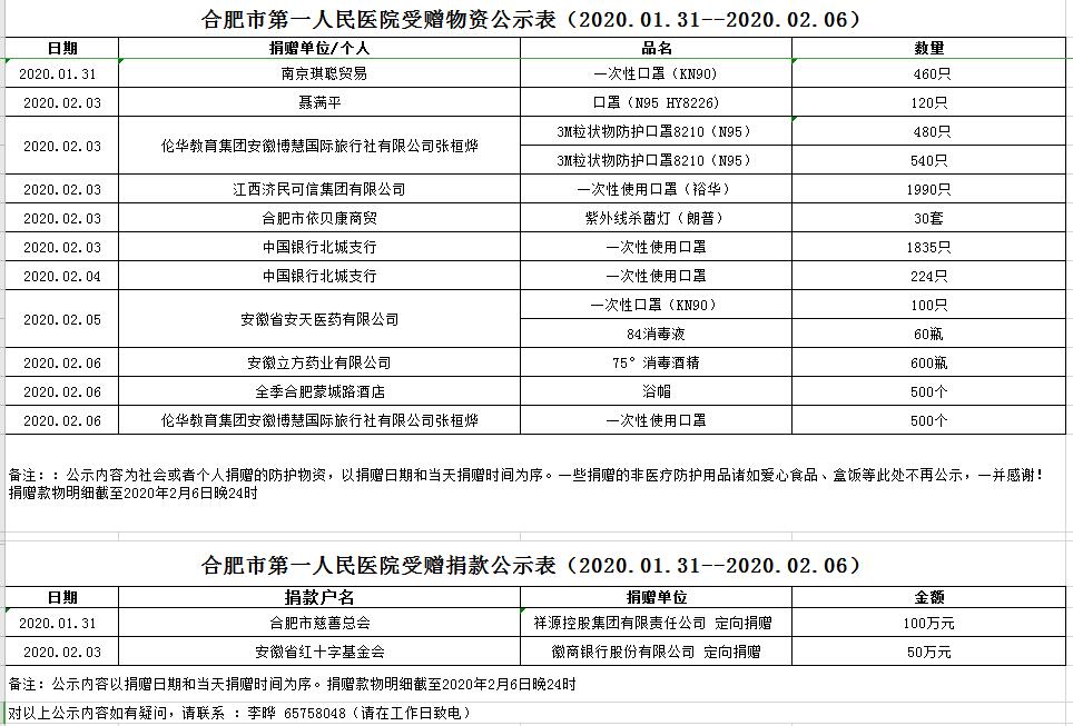 91热爆 受赠物资公示表(2020.01.31--2020.02.06)