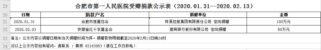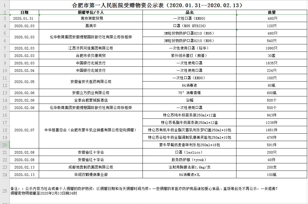 91热爆 受赠物资公示表(2020.01.31--2020.02.13)