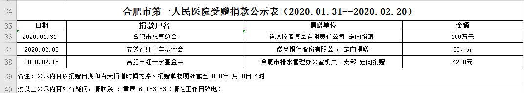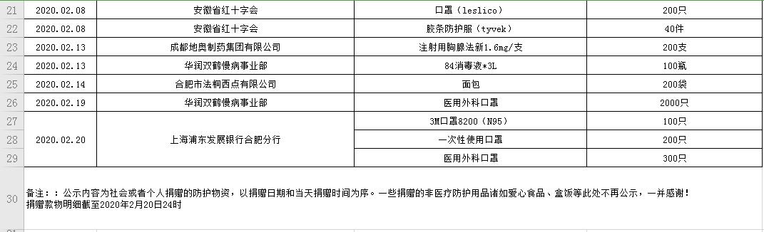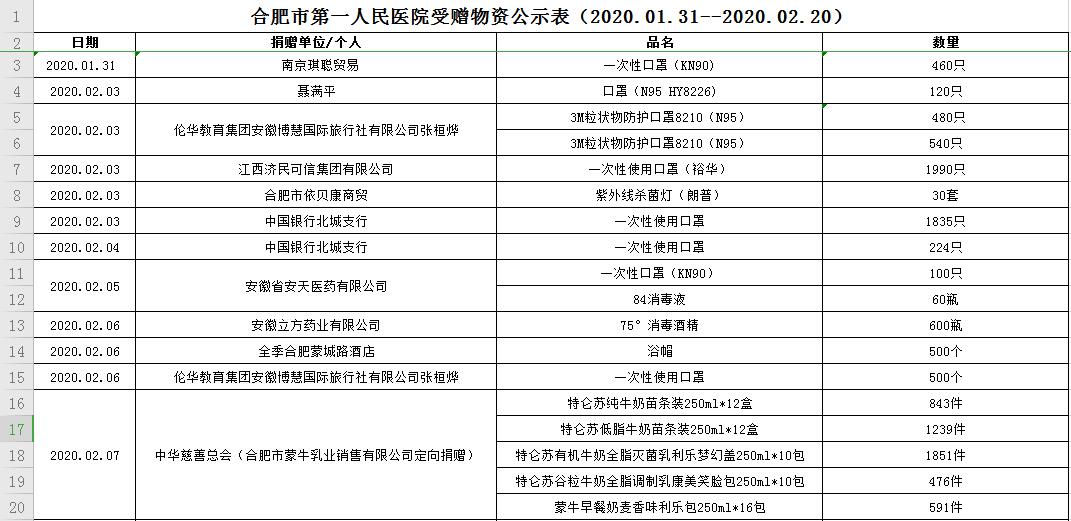 91热爆 受赠物资公示表(2020.01.31--2020.02.20)