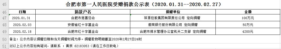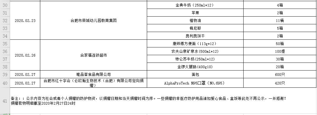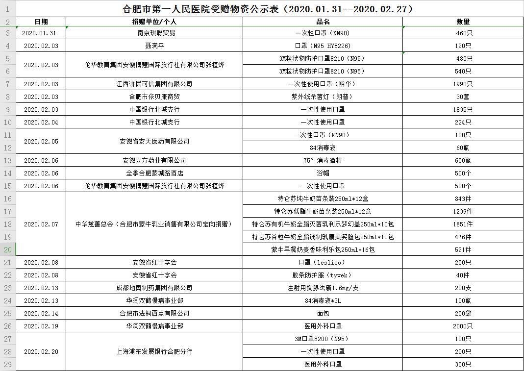 91热爆 受赠物资公示表(2020.01.31--2020.02.27)