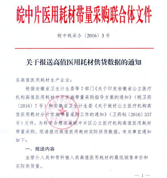 关于报送高值医用耗材供货数据的通知