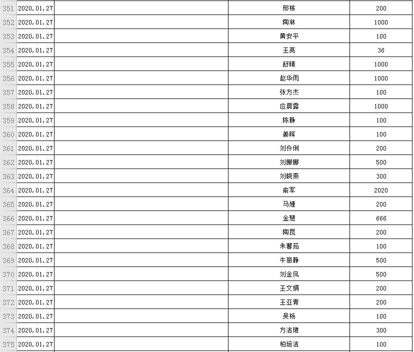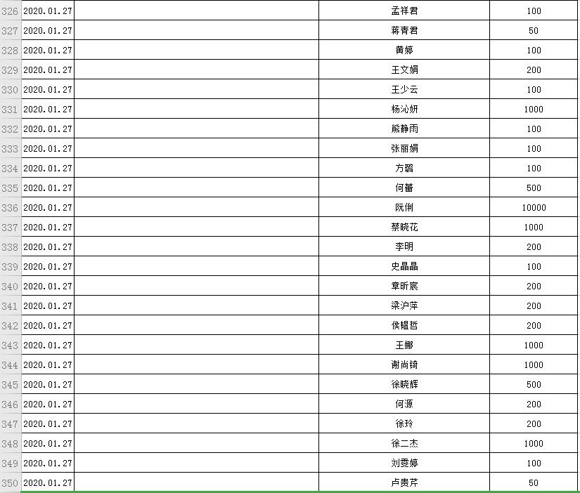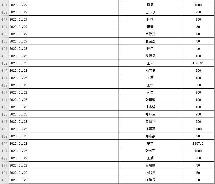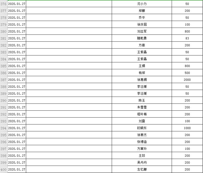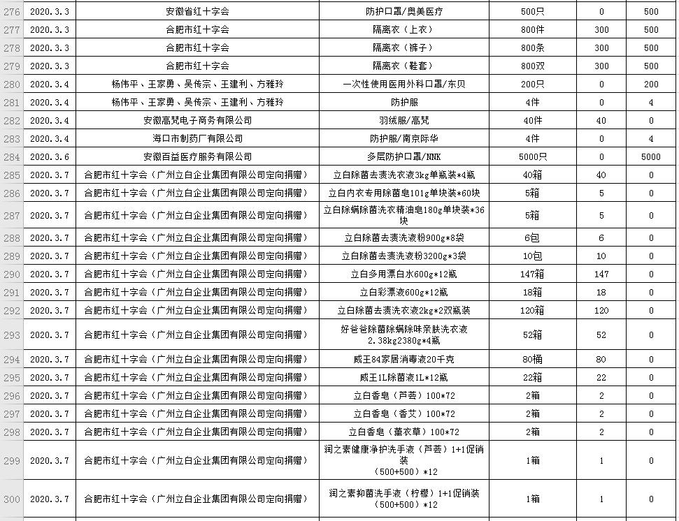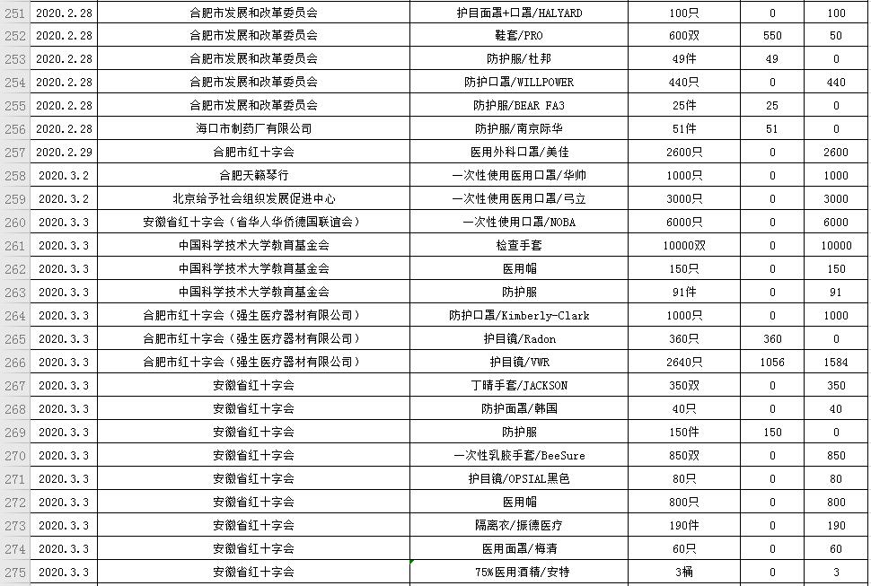 滨湖医院受赠物资公示表(2020.01.24--2020.03.12)