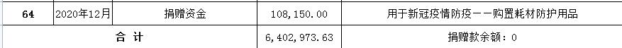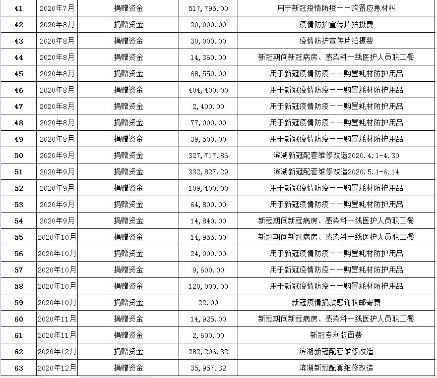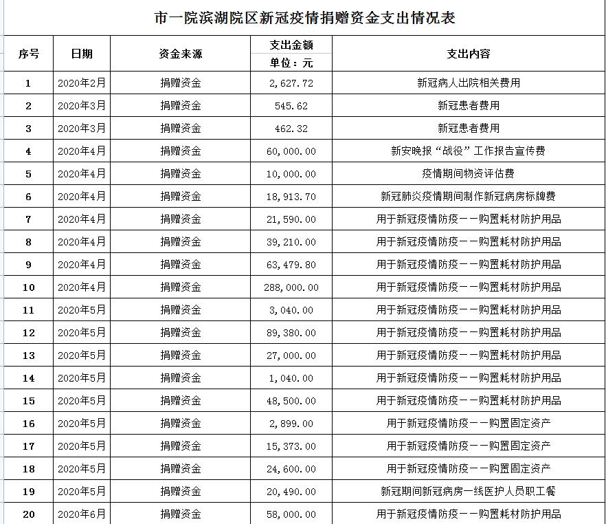 市一院滨湖院区新冠疫情捐赠资金支出情况表