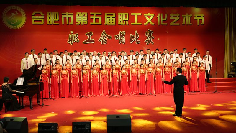来自合肥市直机关、企业单位及高等院校的10支比赛队伍相继登台亮相。用歌声表达对党和祖国的热爱之情。我院硕博合唱团第二个出场,分别演唱了《瑶山夜歌》和《众人划桨开大船》两首歌曲。舞台上我院合唱队员一个个精神抖擞、深情演绎,台下观众陶醉其中,深受大家好评。