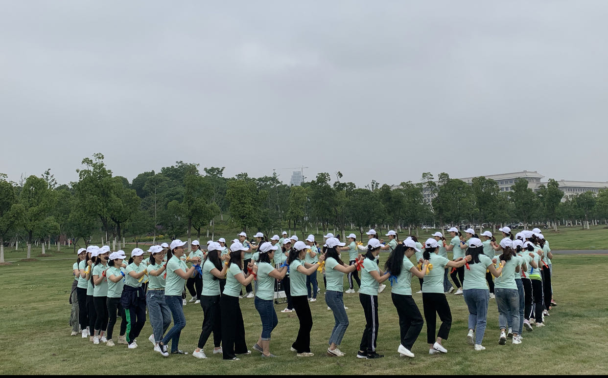 5月10日上午9点,在风和日丽,万里无云的晴朗天气中活动正式拉开了序幕,首先,全体人员手拉手,伴随着“快乐动起来”的伴奏和毛金花护士长的带领下进行了热身运动,热身活动结束后,大家一一进行自我介绍,随后全体人员按照手腕上的红黄蓝丝带的颜色分为3个分队,在广阔的草地上,“下沉的船”、“松鼠搬家”的游戏,让大家感受到生活无常激发了组员的自我探索和思考、相互协作的能力,体会、察觉和认识真正的自己。在“团队建设”中,三队参与者,分别选出了各自的队长、队名、口号、队歌、队形,还画出了各队的画报,三队队长分别阐述了其中的寓意,表达了护士在此次新冠疫情期间,众志成城、共渡难关,战胜疫情的决心,寄予了对市一院和国家更加繁荣富强的美好愿望。