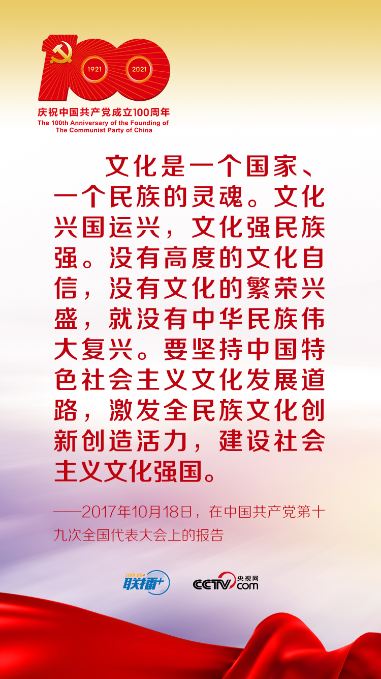 中央广播电视总台 中国共产党立志于中华民族千秋伟业,百年恰是风华正茂!习近平总书记明确指出:“党的百年奋斗历程和伟大成就是我们增强‘四个自信’最坚实的基础。” “四个自信”中,文化自信是更基础、更广泛、更深厚的自信,是更基本、更深沉、更持久的力量。党的十八大以来,习近平总书记高度重视文化自信,强调“要充分挖掘和利用丰富多彩的历史文化、红色文化资源加强文化建设”。央视网《联播+》摘取相关妙言隽语,与您一同学习。