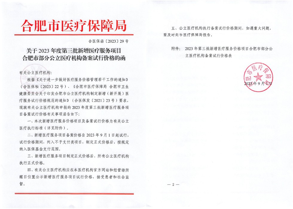 新增价格 ▏2023年度第三批批复新增医疗服务项目价格
