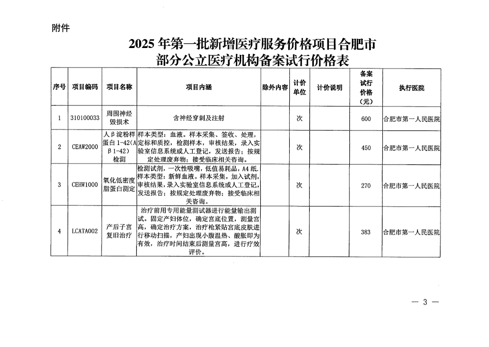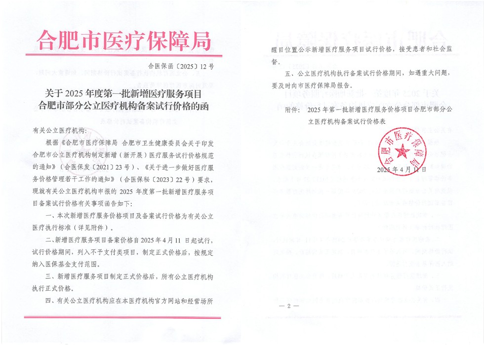 新增价格 ▏2025年度第一批批复新增医疗服务项目价格