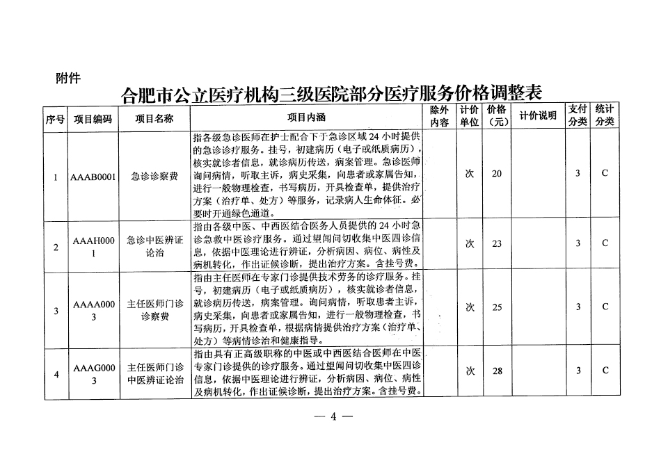 根据《关于调整急诊诊察费等部分医疗服务项目价格的通知》(合医保秘〔2024〕22号)的文件规定,2024年4月22日起,调整医院部分医疗服务项目价格,现公示如下: