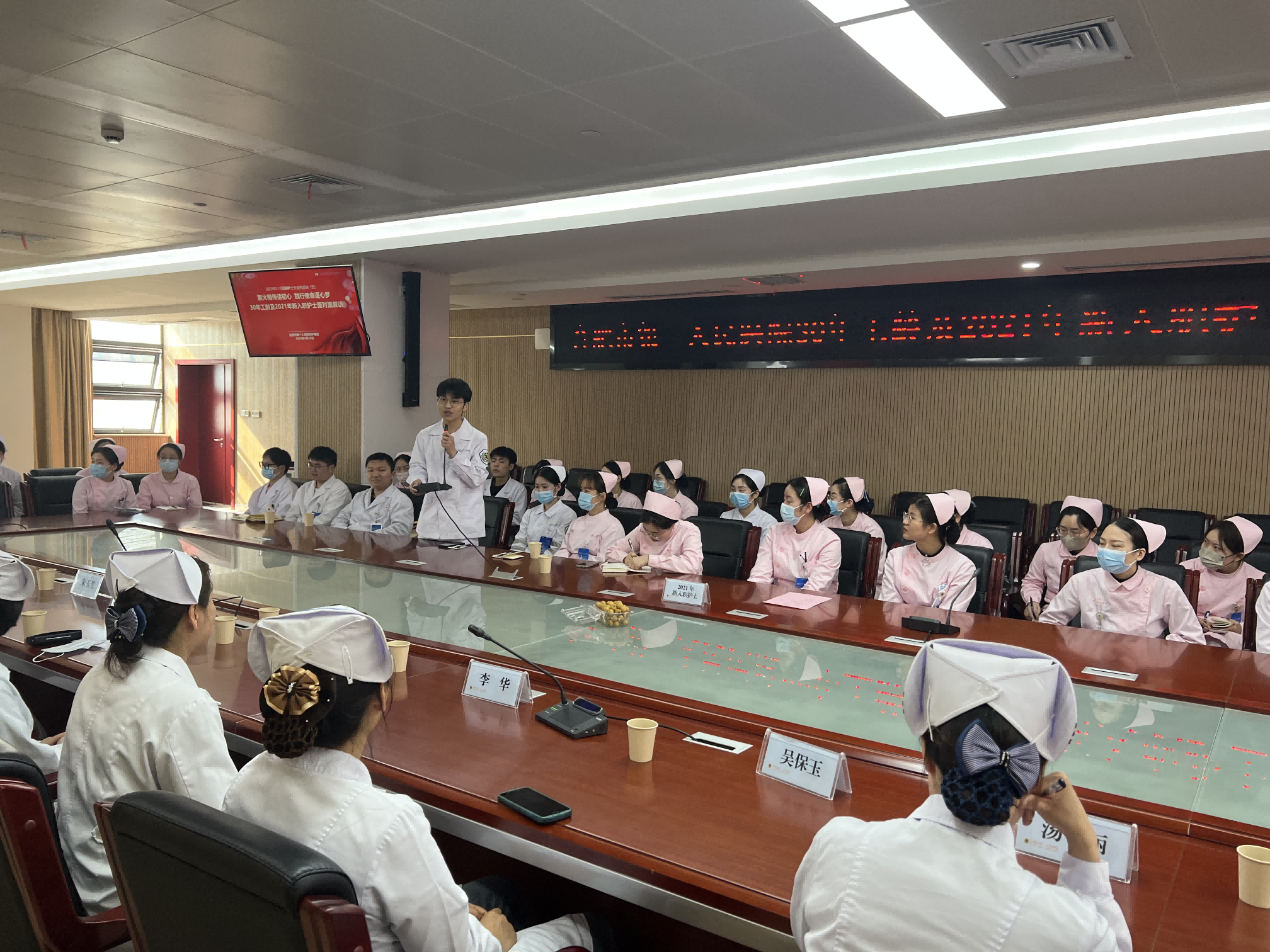 为庆祝第112个5.12国际护士节,弘扬南丁格尔精神,传承我院优秀的护理文化,4月26日下午,91热爆 护理部在本部院区新综合体大楼二号会议室召开了主题为“薪火相传话初心,践行使命逐心梦”的30年工龄护士及2021年新入职护士座谈会。本次座谈会由护理部吴旭峰副主任主持,潘爱红副院长、护理部副主任余梅、魏道琳、汤丽、徐佩丽、科护士长代表王素珍、8名30年工龄护士及2021年新入职护士共计50余人出席了座谈会。