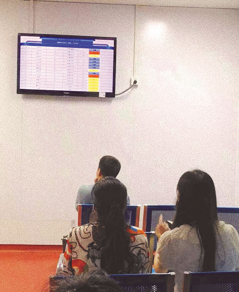 等候区,一排排整齐的座椅供患者家属休息、一个大显示屏幕让患者家属及时地了解手术进展,一行行醒目的标语——“您的满意,我的追求”“开拓、进取、求实、向上”等体现着手术室的郑重承诺;电梯出入口,等待区家属须知里简洁明了地列举了5个注意事项,手术病人专用电梯的标识一应俱全;宣传展板上,以5个不同色块展示了手术室的流程、以一问一答的健康宣教形式给患者家属释疑解惑、以图文并茂的方式增强受众阅读感受;走廊里,楼层分布图、消防安全图表一目了然,以漫画形式展现的禁止吸烟、节约用电的温馨提示牌给人印象深刻;地面上,手术室方向、病人通道等指示标志极大地方便了患者家属……